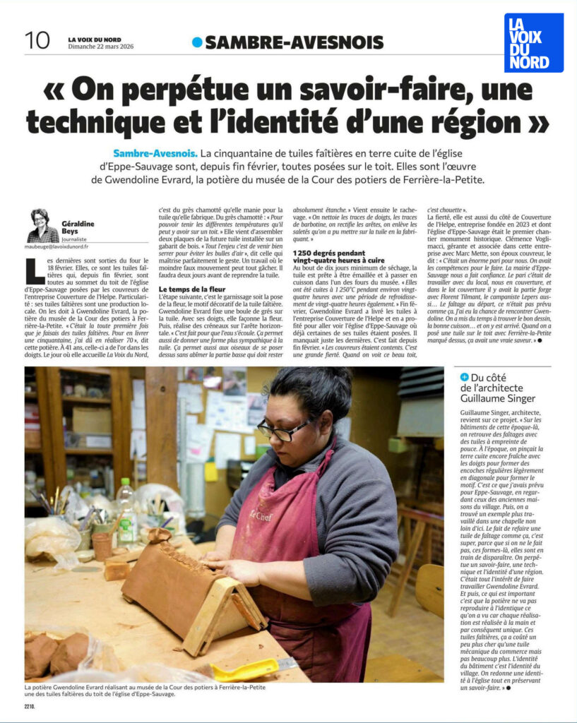 | Février 2026 Modelage de tuiles faîtières Eglise d’Eppe Sauvage |